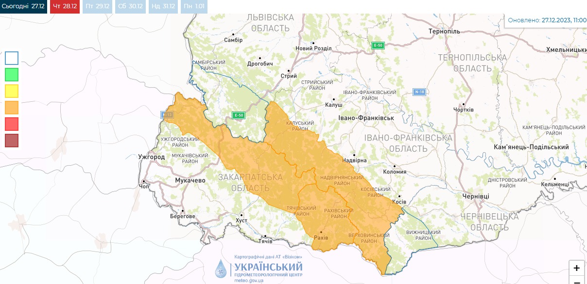 Кроме того, до сих пор сохраняется угроза снеголавинной опасности III уровня. В частности, 28 декабря — на высокогорье Закарпатской области возможен сход лавин при низких дополнительных нагрузках, отдельных средних и больших лавин.